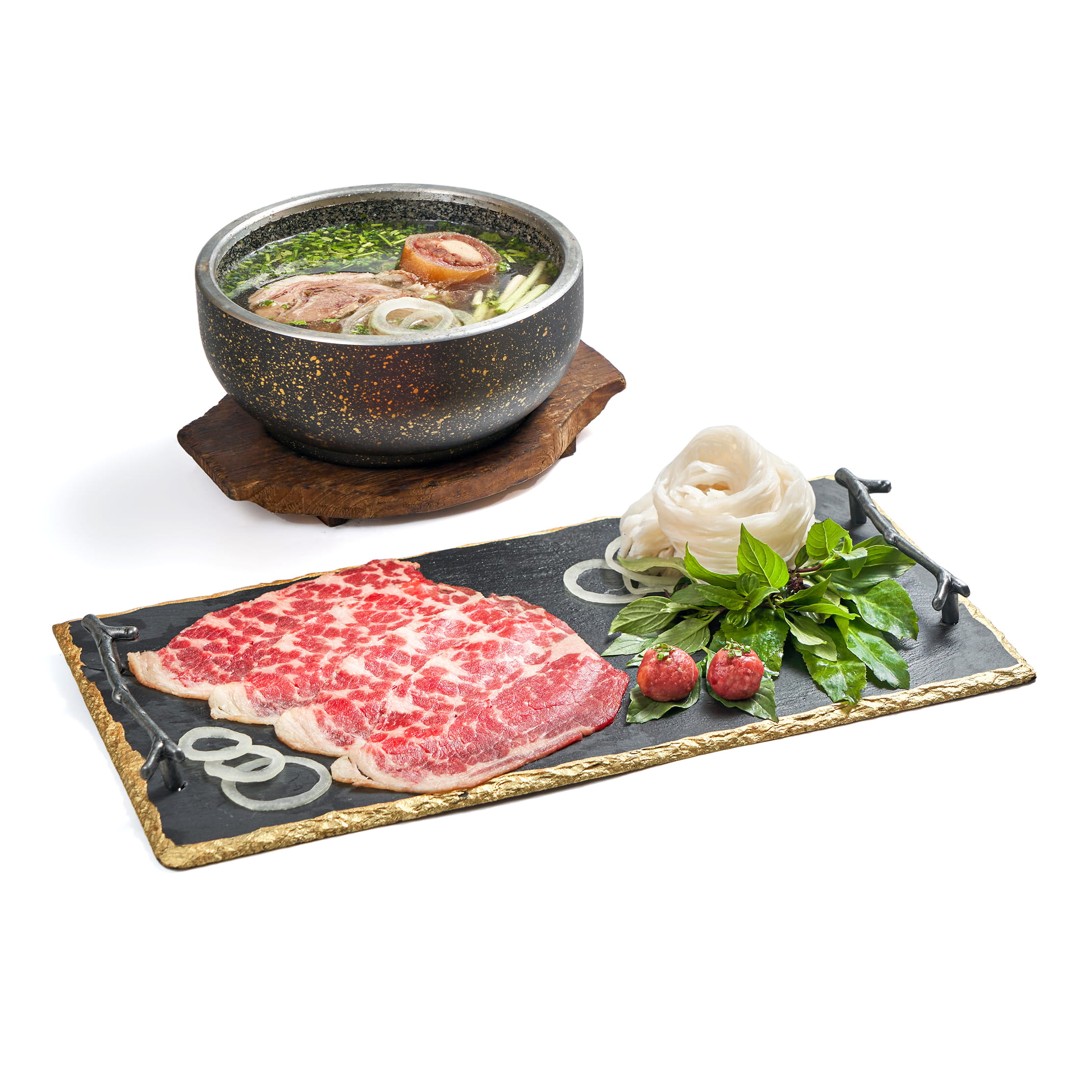 Chuck crest pho in a hot stone bowl offers a different pho experience thanks to its unique cut of beef. Unlike softer cuts, chuck crest has a slightly chewy texture combined with tenderness, creating a more interesting bite. When served in a hot stone bowl, the aroma becomes more noticeable and inviting.